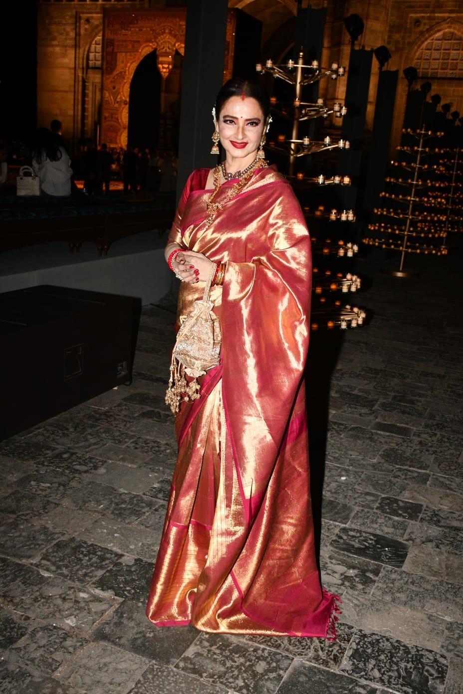 Attention please as the OG fashion queen Rekha is then. The expert star arrived at Dior'spre-fall fashion show in one of her most beautiful saree, and we just can not take our eyes off her. Rekha decided for a red and golden saree with a golden handbag for the event. She styled her hair into a neat bun with gajara and sported statement jewellery. Rekha looked evergreen as ever and happily posed for the Shutterbugs in style